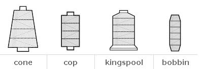 A cone is a larger makeup for usually 5,000m of thread, whereas cops are smaller, uniform tubes usually only holding
